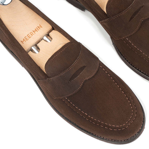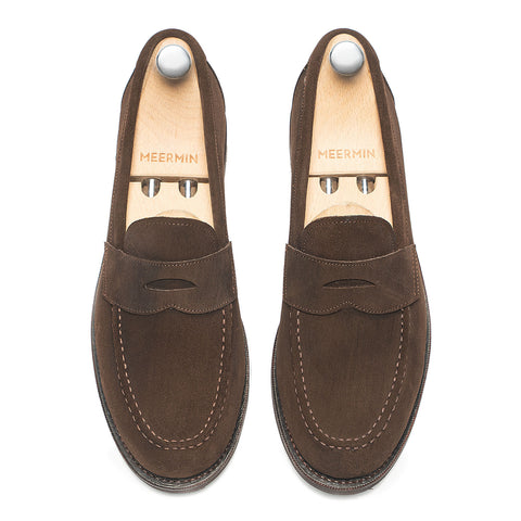 Designed for longevity and relaxed refinement, our casual penny loafer is crafted from Superbuck Gum Oil calf suede by C.F. Stead. Stead’s proprietary Gum Oil finish penetrates deep into the fibers, enhancing the suede’s natural resilience while improving resistance to water and stains. This treatment preserves the compact fiber structure, supple hand feel, refined nap, and rich color depth that distinguish truly exceptional suede.